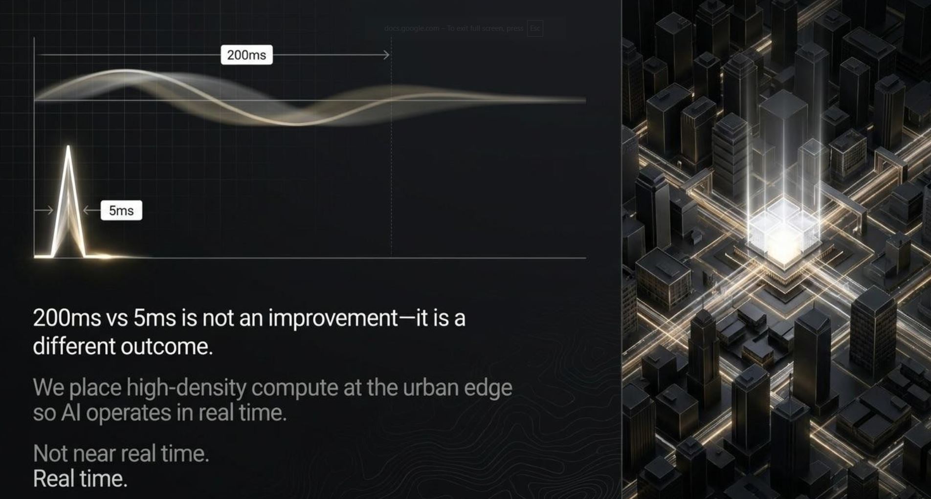 We place high-density compute at the urban edge so AI operates in real time.